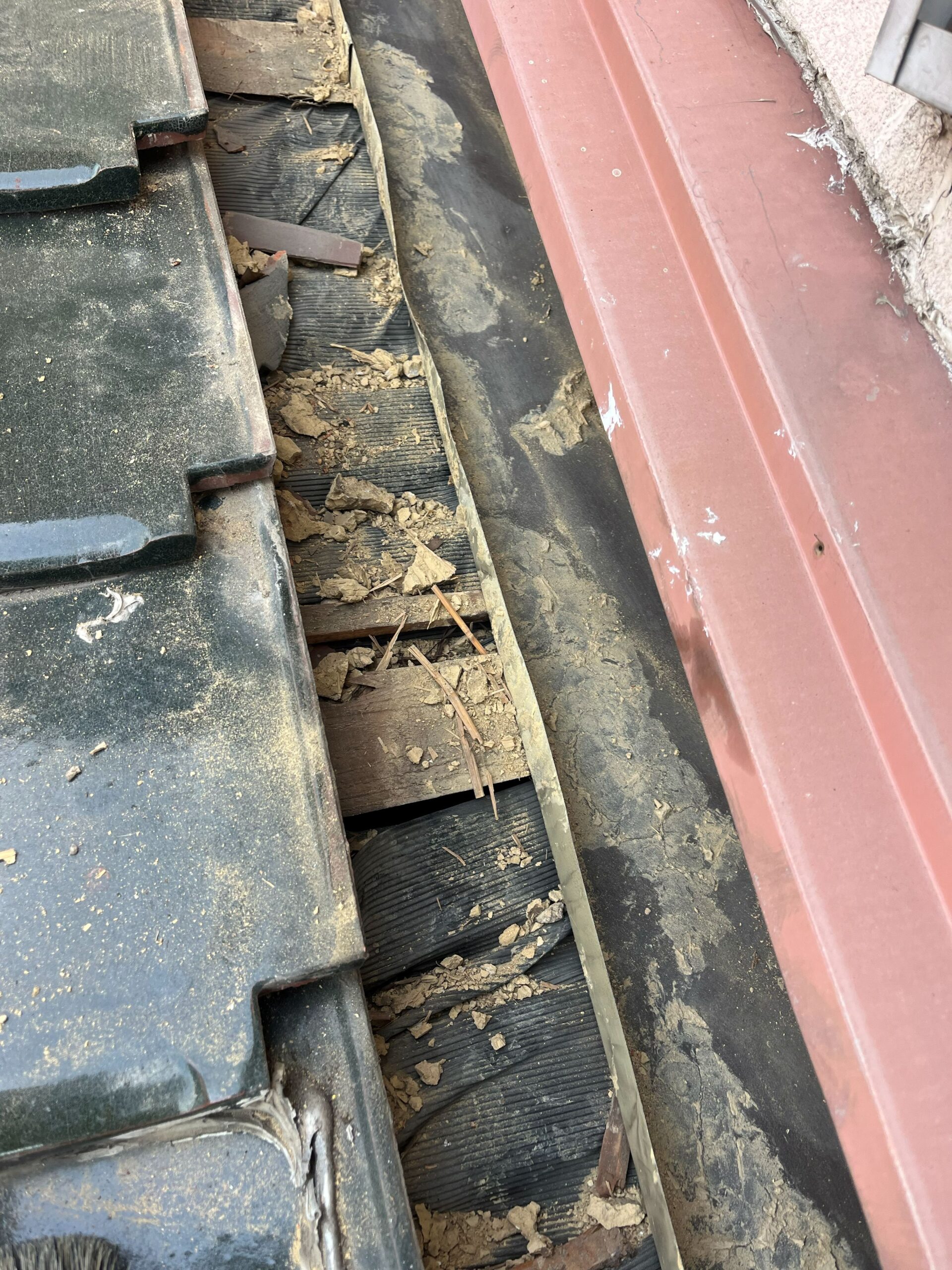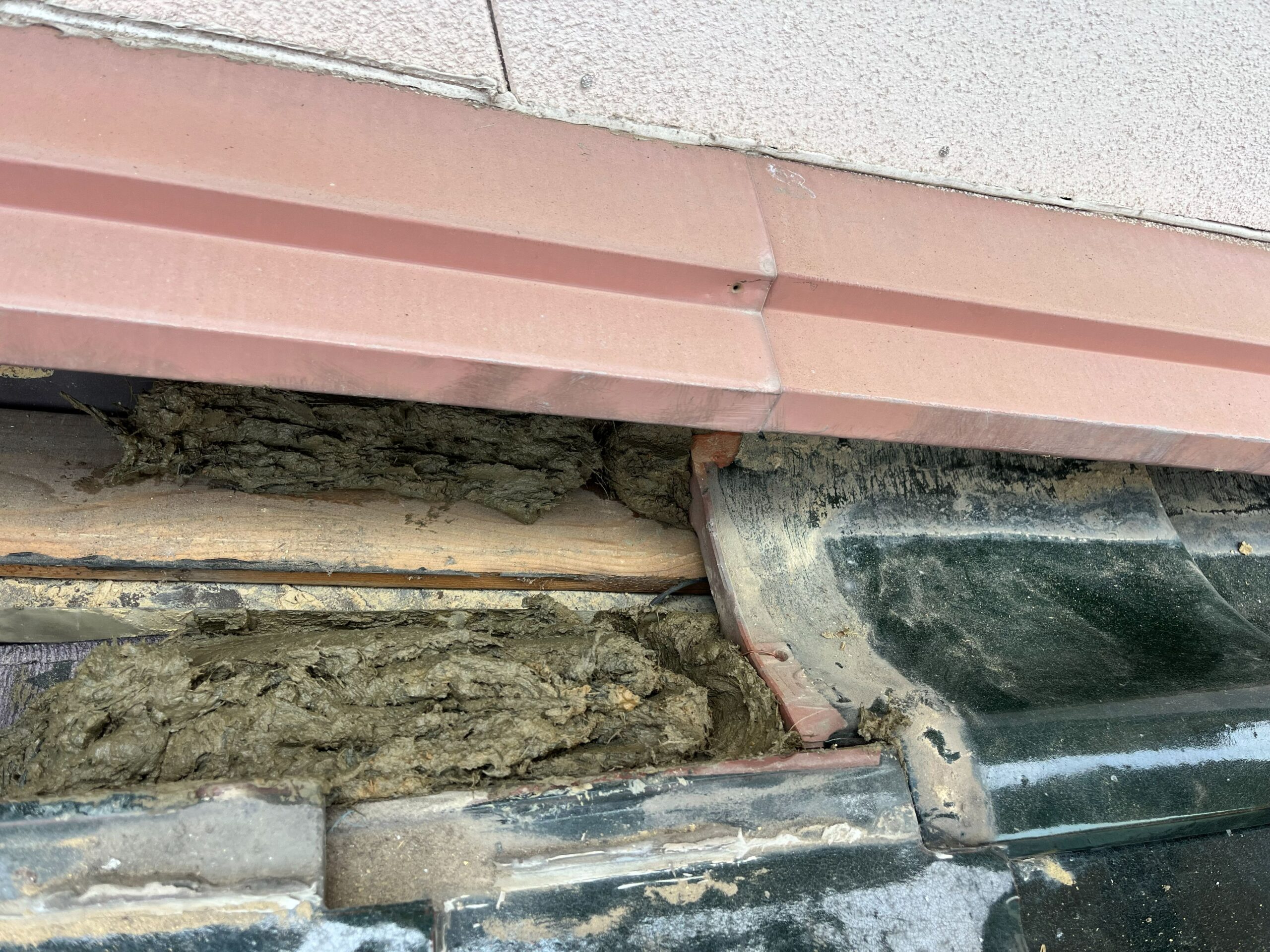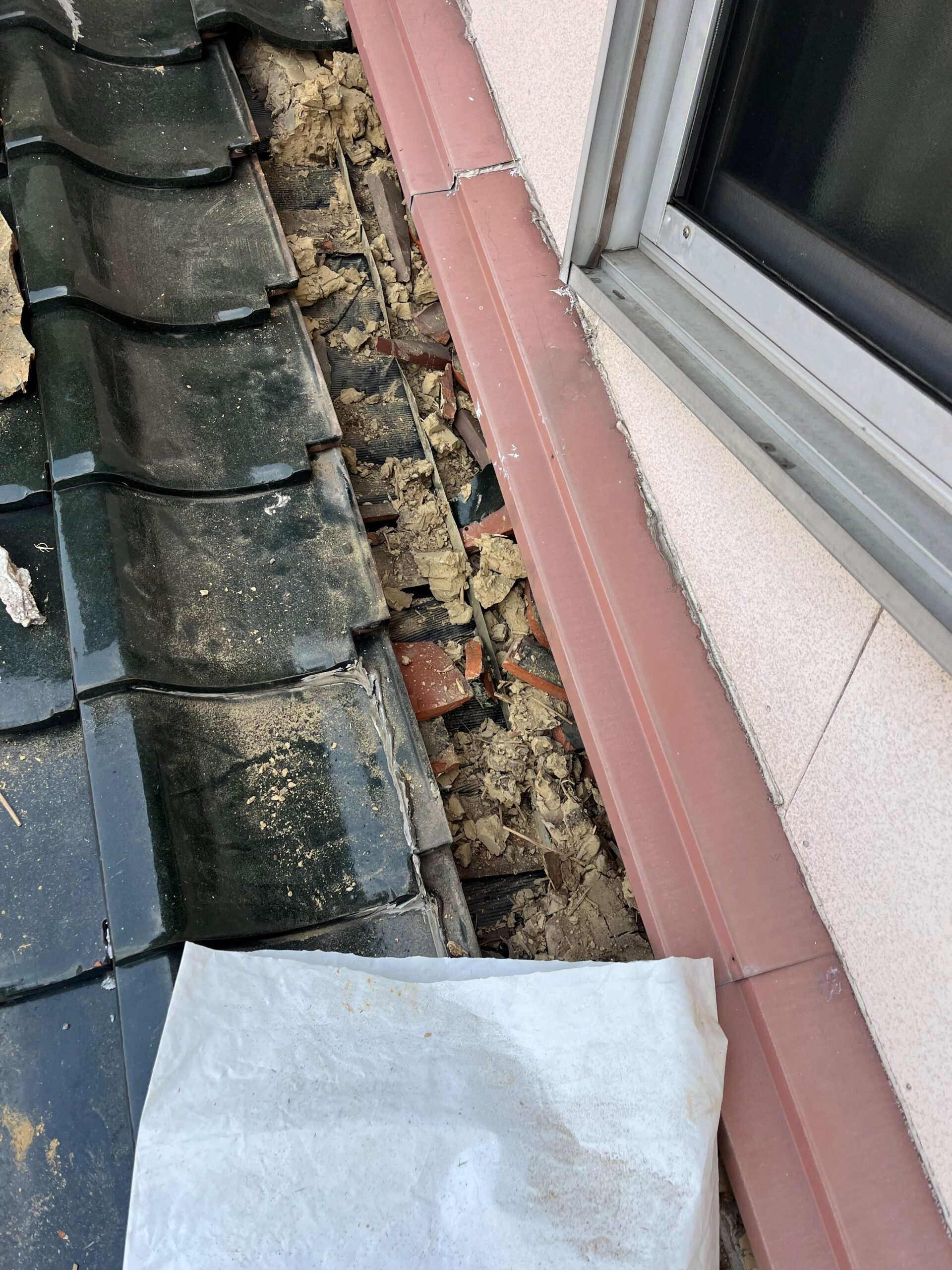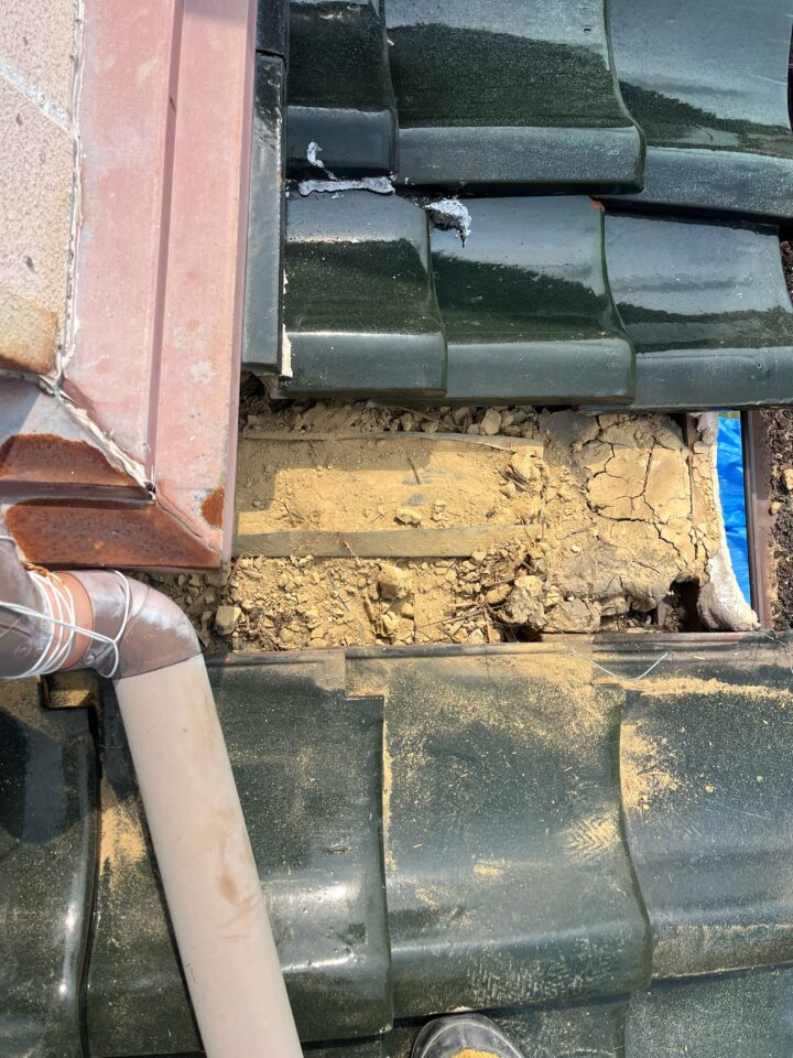 軒先の方まで瓦をはずして行くと、本来瓦の外か雨樋の部分まであるはずの
