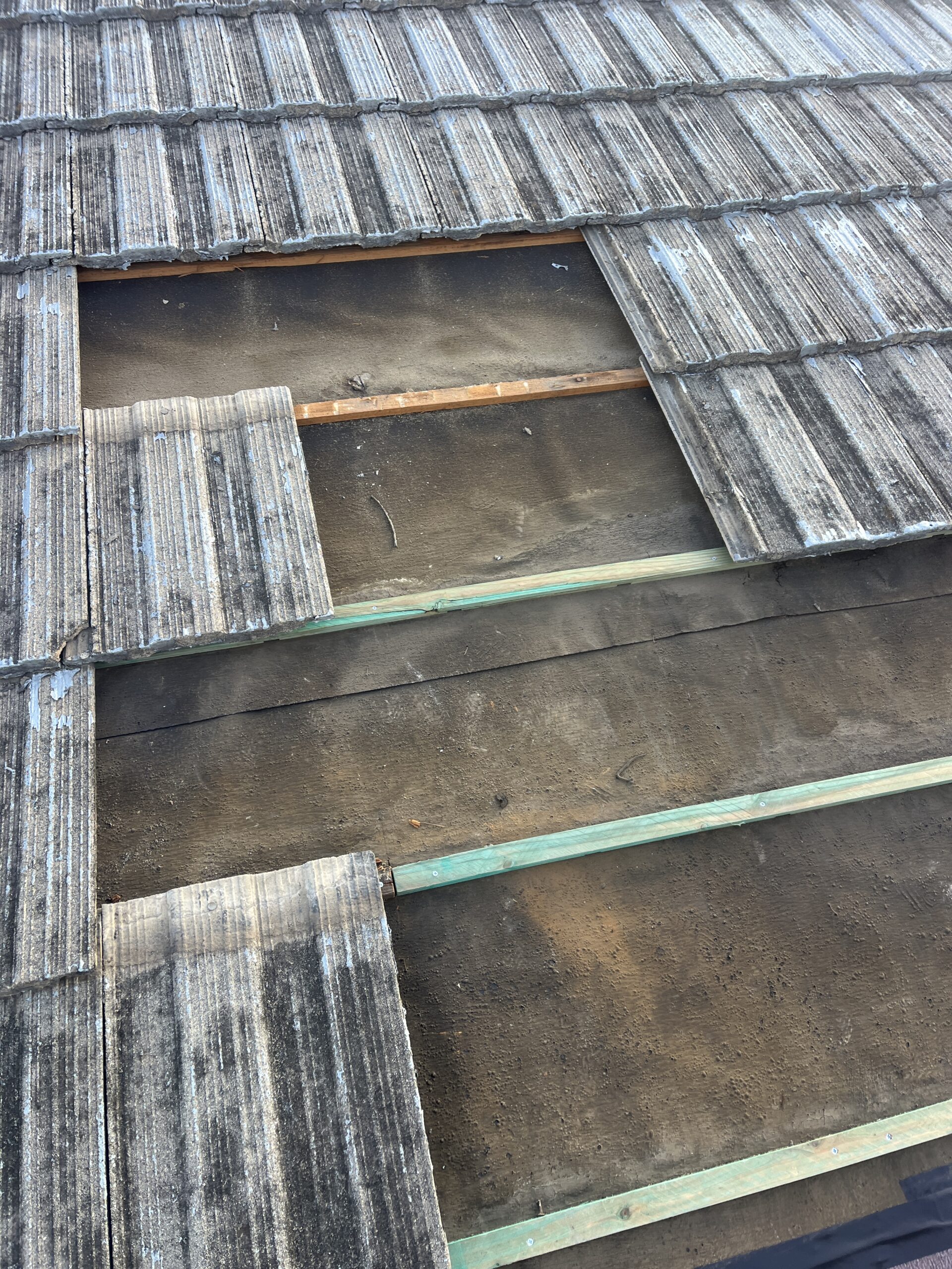修理ですが、まずは悪い部分のセメント瓦をはずします。